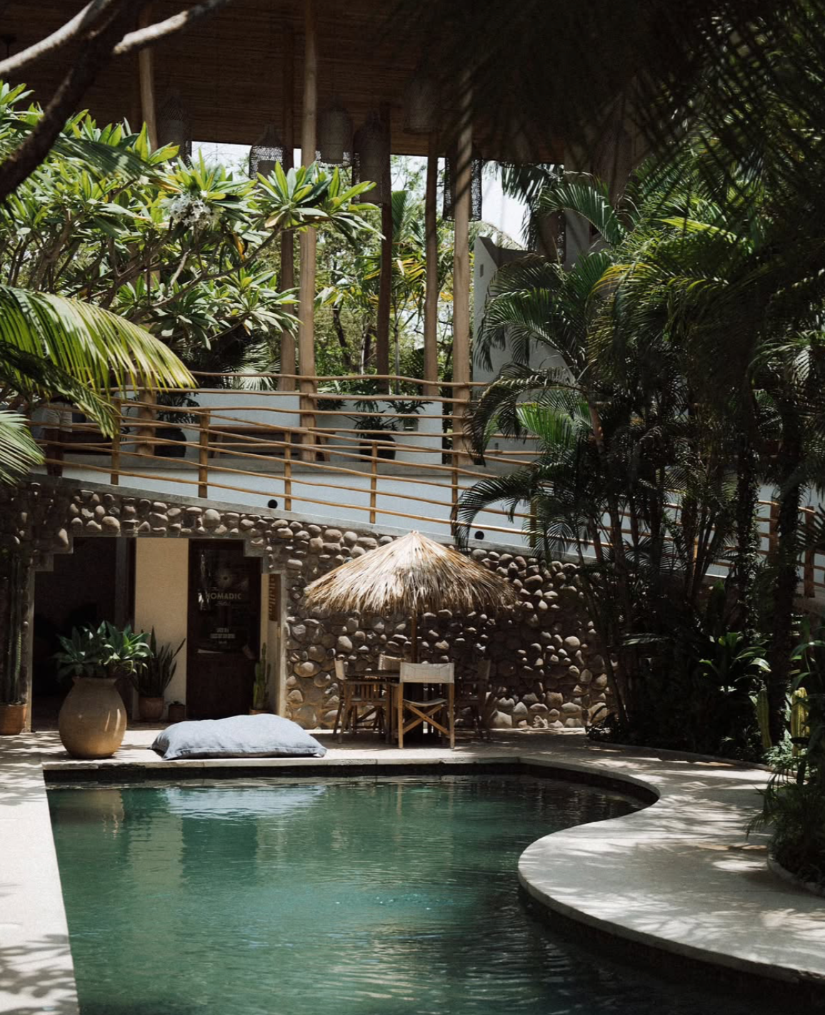 The Nomadic Hotel, nestled into the jungle of Nosara Costa Rica is a space for connection and transformation. Nosara is part of the Nicoya Peninsula, one of only five Blue Zones in the world; A Blue Zone is a a region where people live longer, healthier, and happier lives. This unique environment is attributed to fresh local foods, daily connection with nature, strong community bonds, and a slower pace of life. By joining us here, you are not only experiencing beautiful beaches and wildlife, but also stepping into a way of life that naturally supports well-being and longevity. The Nomadic has a beautiful open air yoga shala for our morning practices, workshops and playtime, a pool to relax in and a restaurant for snacks, drinks and anything you need to stay nourished.